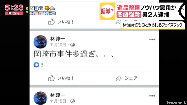 岡崎市で土木建築業を営む鈴木容疑者。警察などによりますと林容疑者とは20歳のころに知り合い、その後鈴木容疑者が立ち上げた会社で林容疑者も働いていたといいます。
