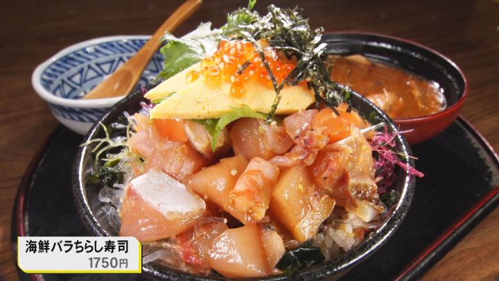 他にも、イクラ、ブリ、カンパチ、キンメダイなどがてんこ盛りの「海鮮バラちらし」や…。